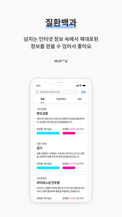 고도화된 알고리즘 문진을 통해 질환을 예측할 수 있습니다.