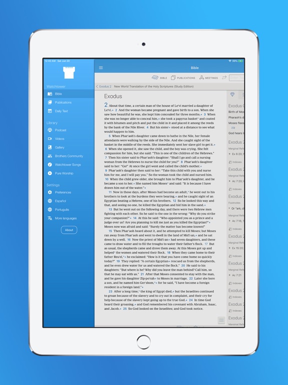 You'll find here Watchtower Online Library, Podcast, Daily Text, NWT Bible, Educational Videos, Gallery Wallpapers, Publications, Songs and a lot more for Jehovah's Witnesses in almost all languages.