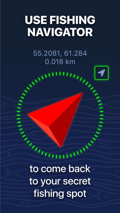• Fishing navigator. Easily find saved fishing location with our navigation system that even works offline.