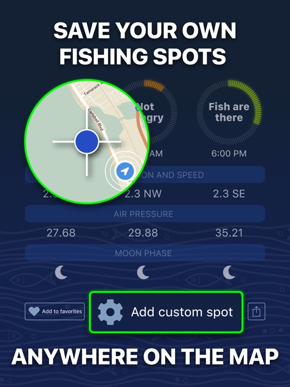 • Save up to 20 favorite fish spots and see the fishing statistics for them.