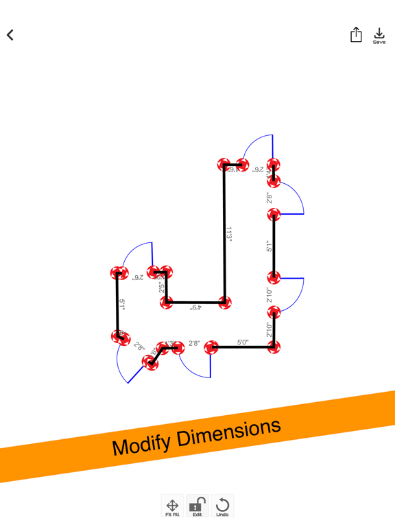 No need to have pen and paper to draw your plan, your drawing is ready to share/print as soon as you are done with measurement. iMeasure will mark doors, window and more during measurement and will automatically draw them in your drawing.