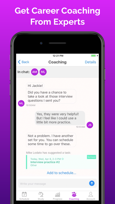 Your college years are the perfect time to work with a career coach. Chipper Coaching is an optional upgrade in Chipper. Connect with experts in your career field and get career advice, using live chat in the Chipper homework app. Chipper’s Coaching team provides career insights specific to your career field, unlike general tips you might get from advisors. Plus, you can take a free Candidate Strength Assessment to learn where you currently stand, and get recommendations from our team for improving. Out of all the study apps, only Chipper offers this feature!