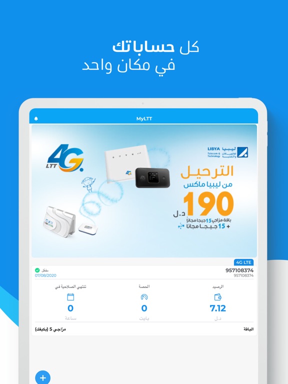 يمكنك من خلال التطبيق إدارة حسابات خدماتك والاطلاع على كافة التفاصيل المهمة. يدعم اللغتين العربية والإنجليزية خصائص التطبيق: - إضافة أكثر من حساب - الاطلاع على بيانات الحساب (الرصيد, الحصة, حالة الحساب) - تعبئة الرصيد - تغيير الباقة - تجديد الباقة قبل انتهائها - طلب حصة إضافية - التعرف على الخدمات والباقات المتوفرة - إدارة كلمات المرور والرقم السري - استخدام رمز مرور واحد لإدارة كل حساباتك