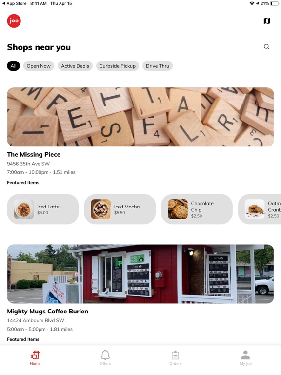 Skip the line and earn rewards on the largest indie coffee network in the U.S.! Whether you’re craving a latte, hungry for a sandwich, or want to grab a healthy snack on-the-go, joe has you covered. Discover new experiences for pickup or curbside service from hundreds of coffee shops, bakeries, cafes and more. Whether you want to take the worry out of your daily routine or discover something new joe makes it easy to order ahead from the app or desktop and earn points towards rewards with every purchase and redeem them anywhere joe is accepted.