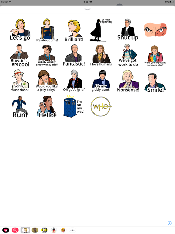 Get ready to travel through all of space and time with the Doctor, her friends, and these 20+ static and animated stickers. This pack is bigger on the inside!