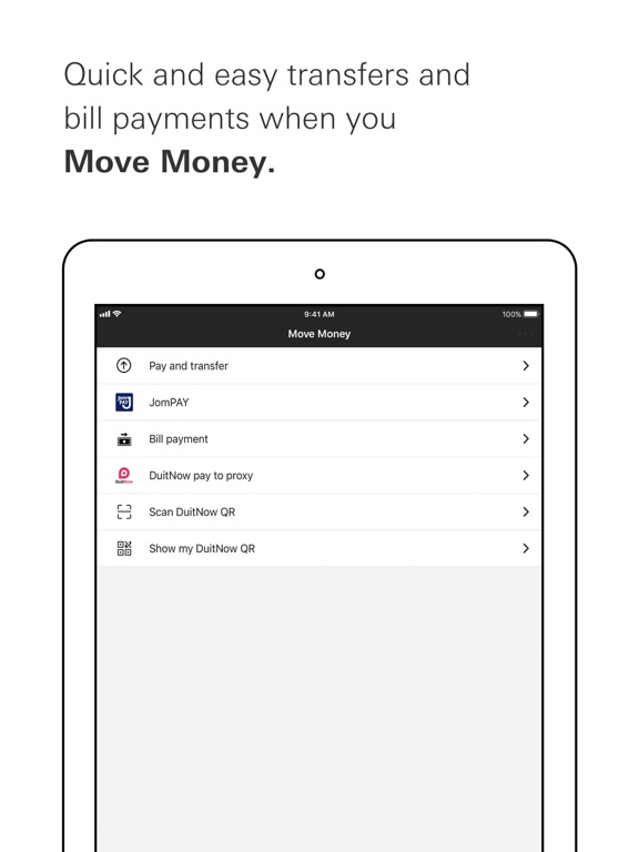 • DuitNow – send or receive payments instantly anywhere, anytime without needing to share bank details