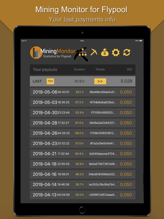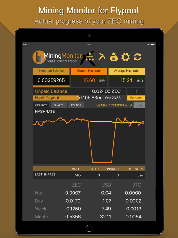 Unofficial monitoring application for checking your mining on Flypool Zcash mining pool.