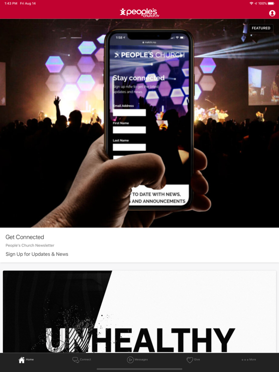 Take People's Church with you wherever you go! With the PC App You can stream live services, watch or listen to sermons on the go, and keep up to date with what's happening at People's Church!
