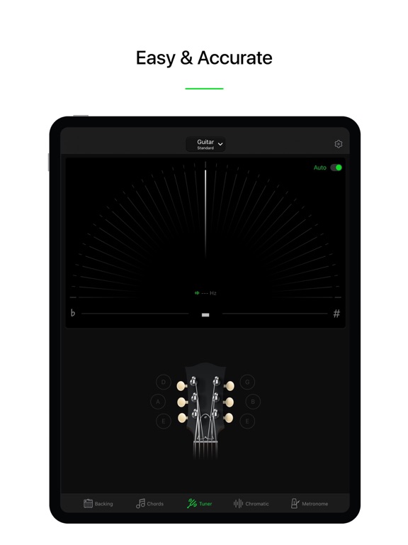 With Tuner, you can easily, quickly and accurately tune your guitar, bass or ukulele anywhere, anytime - all you need is your phone and your instrument. That’s all. You don’t need any other accessories to enjoy playing music! This app is perfect to learn how to tune your instrument quickly and whether you are beginner, intermediate or advanced, you can always choose the best mode for you: manual or automatic. Moreover, we provide you a tuning range from Ab1 (51.91 Hz) to D5 (587.32 Hz)!