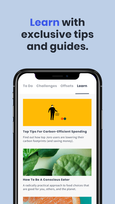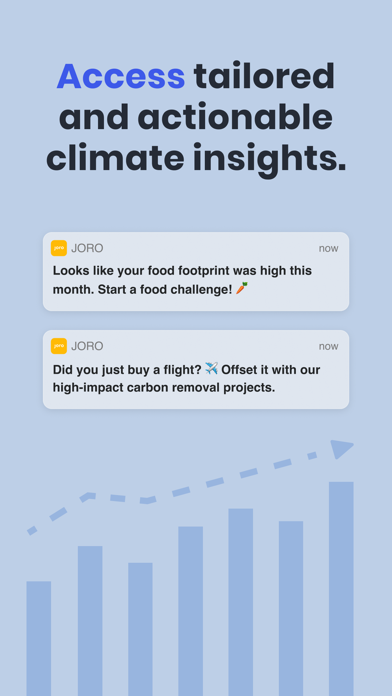 Joro helps you take climate action as you shop. With the Joro app, align your values with your lifestyle. Develop an intuition for the choices that matter most - whether that’s joining a sustainability challenge to eat more plant-based meals, using less energy at home, offsetting flights, or joining our Net Zero membership.