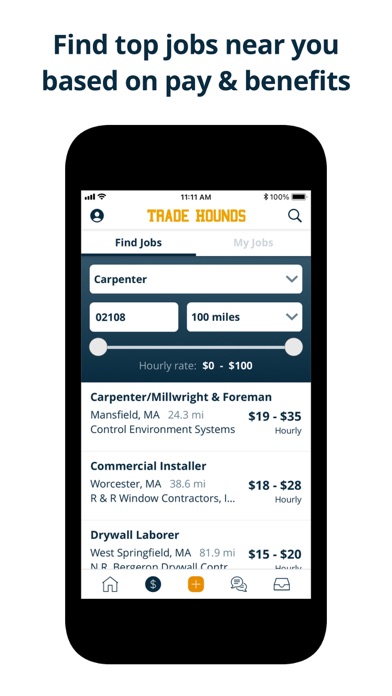 - NEW: Find Jobs! You can now find work on Trade Hounds by clicking on the $ button. No jobs in your area yet? Turn on your app notifications to know when Jobs are available in your state!