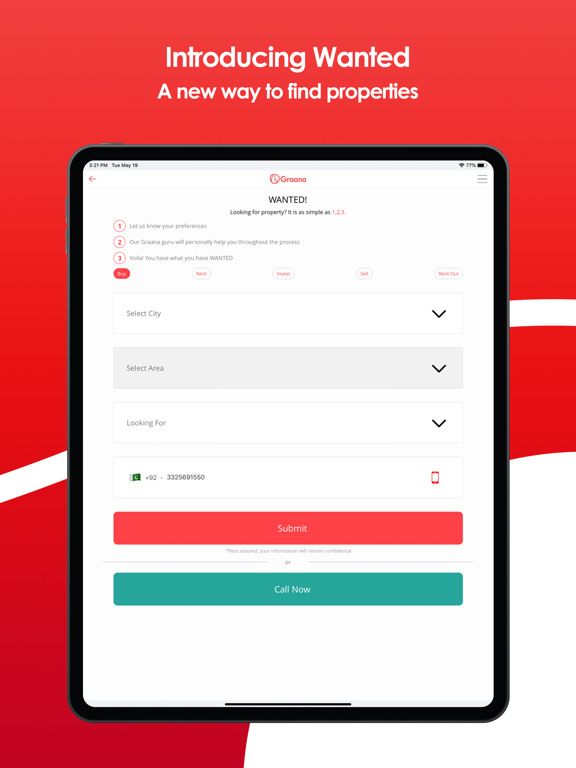 Graana application offers a unique feature, WANTED, that allows you to find the perfect house for you. Follow these steps to use the WANTED feature.