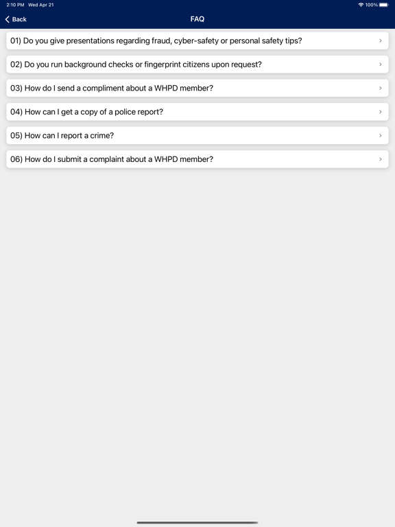 This mobile application is an interactive app developed to help improve communication with area residents. It allows residents to connect with the Winter Haven Police Department by reporting crimes, submitting tips, and other interactive features, as well as providing the community the latest public safety news and information.