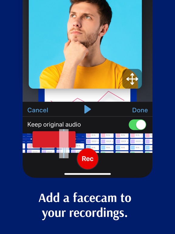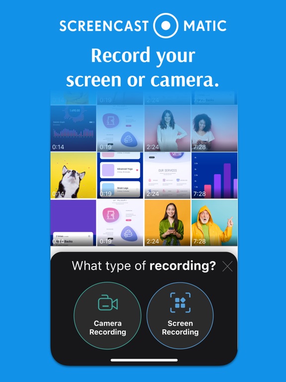 Screencast-O-Matic, the original desktop screen recorder, facecam recorder and video editor, is now available on your iPhone and iPad. Our free, easy-to-use mobile app allows you to quickly capture your screen and create high-quality videos. The powerful, intuitive video editor gives you all the tools you need to personalize your videos. Our AD-FREE app allows you to record video including audio & facecam options with NO watermark and NO time limit!