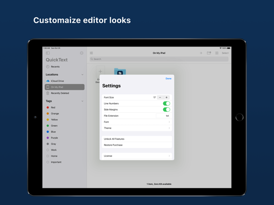 QuickText is a document-based app. So you can edit a plain text file on iCloud Drive, Dropbox, Google Drive, and more.