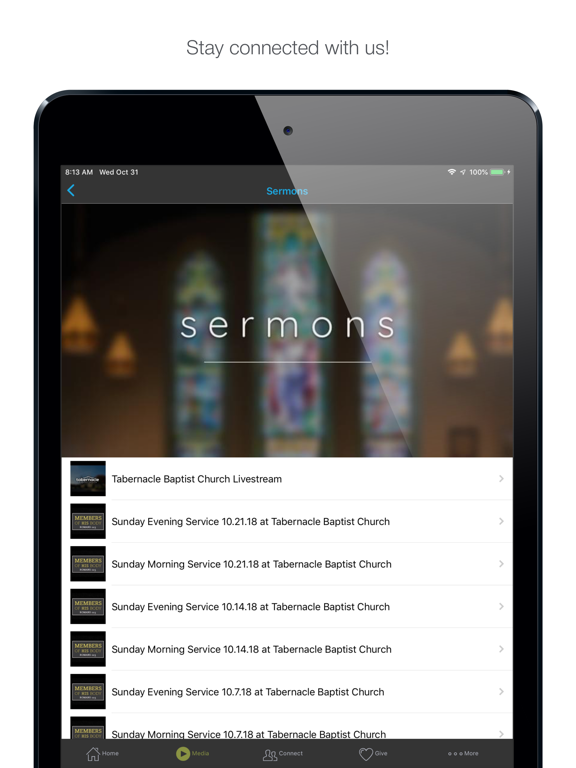 The Tabernacle Hickory App provides a place for you to connect with ministries of the Tabernacle Baptist Church in Hickory, North Carolina. This app features the livestream of our Sunday worship services, audio and video sermons from Pastor Scott Hooks, information about our ministries and upcoming events, online giving opportunities, and so much more!