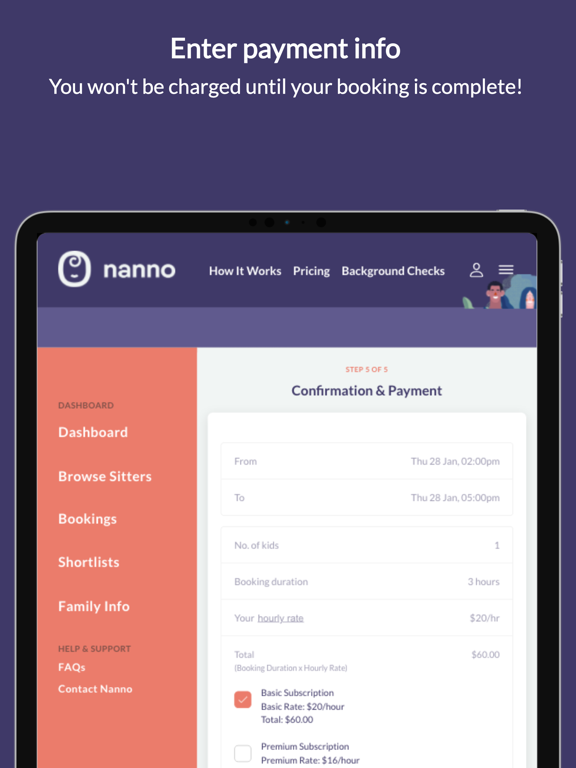 Once your booking is concluded (and the details finalized), your babysitter is paid automatically. No more awkward late-night math or trips to the ATM.