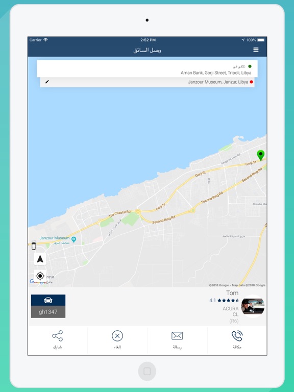 - سترى صورة السائق ونوع السيارة، ويمكن تتبعه على الخريطة.
