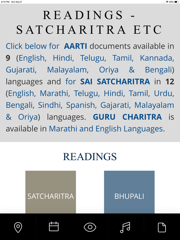 4. Read Shirdi Aarti lyrics, Sai Satcharitra, Guru Charitra in 10 plus languages