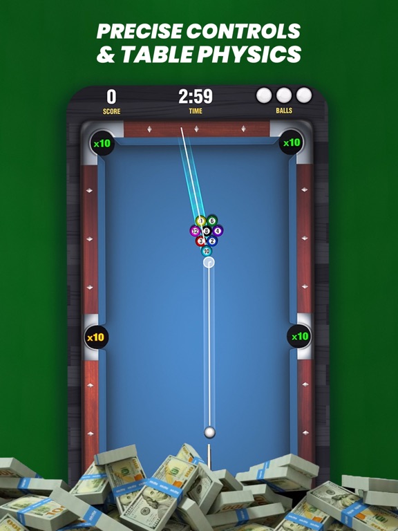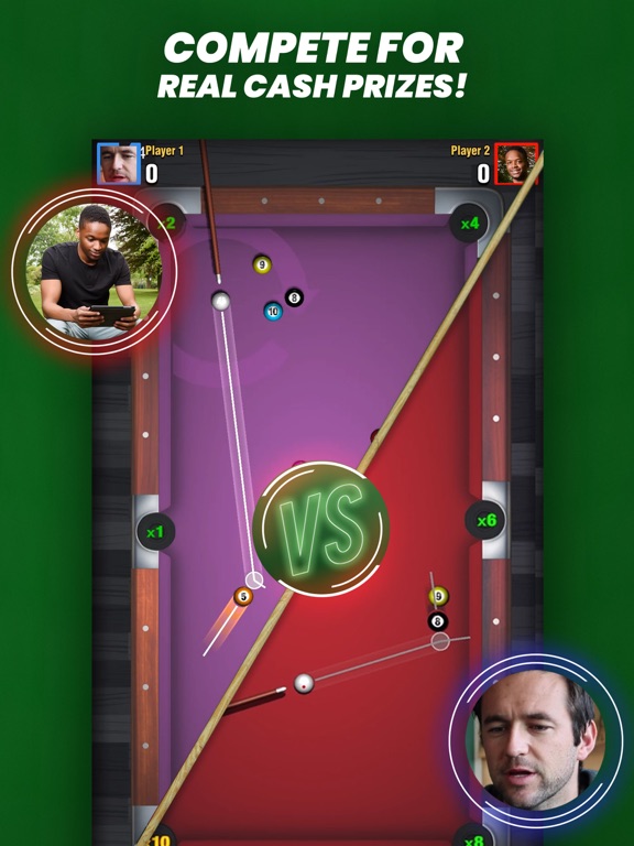 Practice for free earning extra score for speed, ball positioning, calling pockets, and trick shots, then turn Pro and play for money powered by Skillz in our head-to-head competitions, leagues, and tournaments. We are the #1 BEST pool game for competing with friends and winning cash.