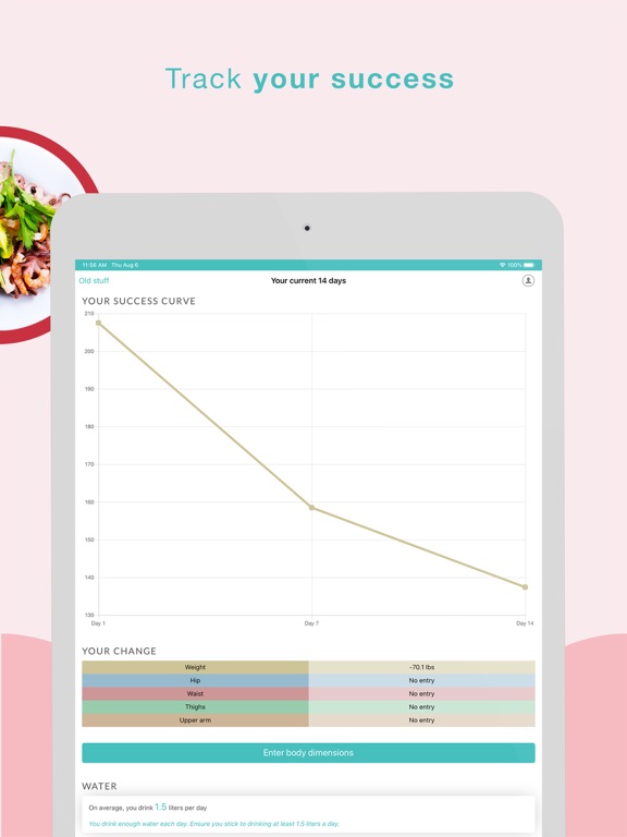 You will get full access to all functions and the 2-week nutrition plan including recipes and coaching with the In-App Purchase. Free of charge you can use the fast watch, you can change and adapt your fasting times, you get push messages to remind you of the fasting and eating times and you can record and save your body measurements and success.