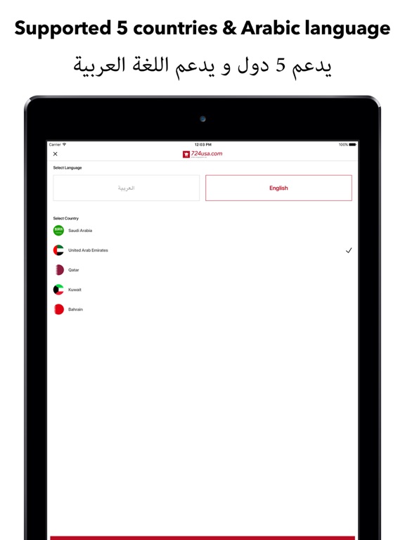 7/24 USA Shopping App is active in Saudi Arabia, United Arab Emirates, Qatar, Bahrain, Kuwait countries with English and Arabic language support!