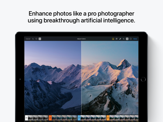 • Use groundbreaking machine learning to automatically enhance photos, adjust lighting, white balance, and colors, apply presets, and even improve the composition of your photos.