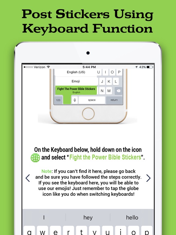 * Option 3: By the keyboard function. Please note “Allow Full Access is a requirement from Apple for all third-party keyboard installations. Fight The Power Bible Sticker App DOES NOT COLLECT any personal identifying information. Please see the full privacy policy in the Information Section.