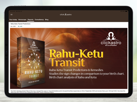 Premium Horoscope Reports: Premium Reports like Yearly Horoscope, Wealth Horoscope, Career & Business Horoscope, Marriage Horoscope, Transit Reports etc., that provide an in-depth analyses of specific aspects of your life.