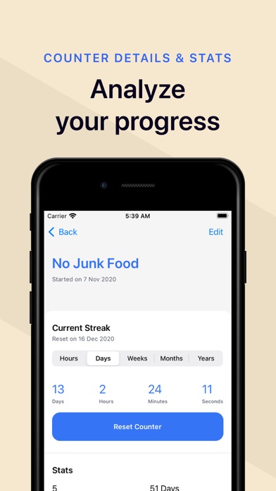 Whenever you want to smoke again, open Days Since and check your progress. You don’t want to reset that counter, do you?