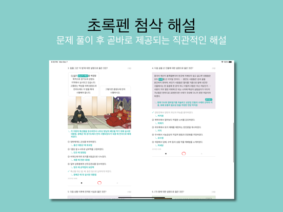 작은 화면에서 장황하게 표시되는 해설 방식을 지양하고 설명이 필요한 부분에 곧바로 초록색 펜으로 해설을 보여 줍니다.