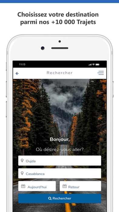 Consultez notre sélection de tickets d'autocar pour des voyages d'une ville à l'autre à travers le Maroc et vers l'étranger. Comparez les prix, les horaires et les villes de départ et d'arrivée sur notre application mobile afin de trouver le ticket d'autocar le moins cher pour votre voyage.