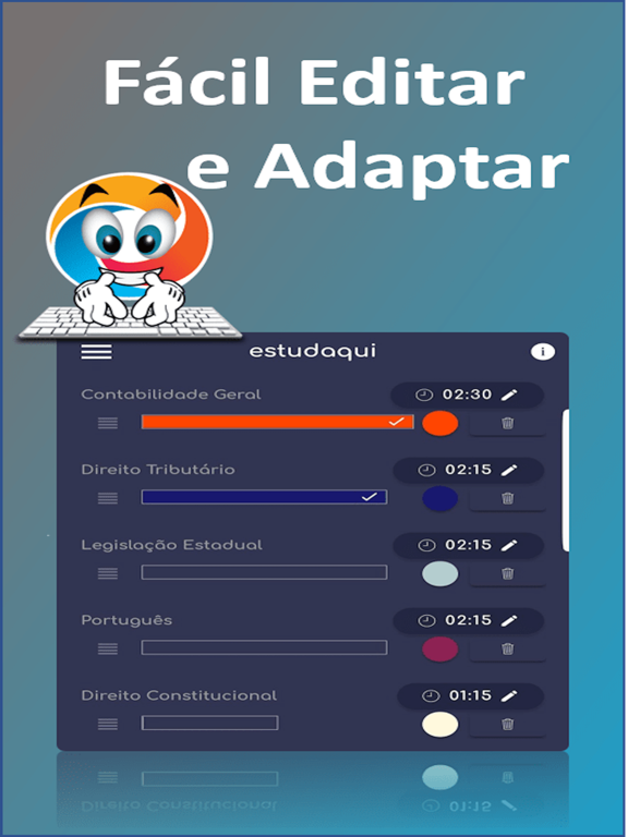 Aliado ao ciclo, o Estudaqui possui um sistema em que o usuário mede seu tempo de estudo para acompanhar seu desempenho e evolução. Você poderá utilizar o cronômetro ou fazer anotações manuais. O Estudaqui tem como premissa ser flexível para atender às necessidades dos usuários.