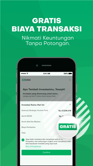 Semua pembelian kamu di Bibit tidak dipotong biaya transaksi supaya keuntungan kamu bisa lebih tinggi. Bibit di bayar oleh pihak manajer investasi.