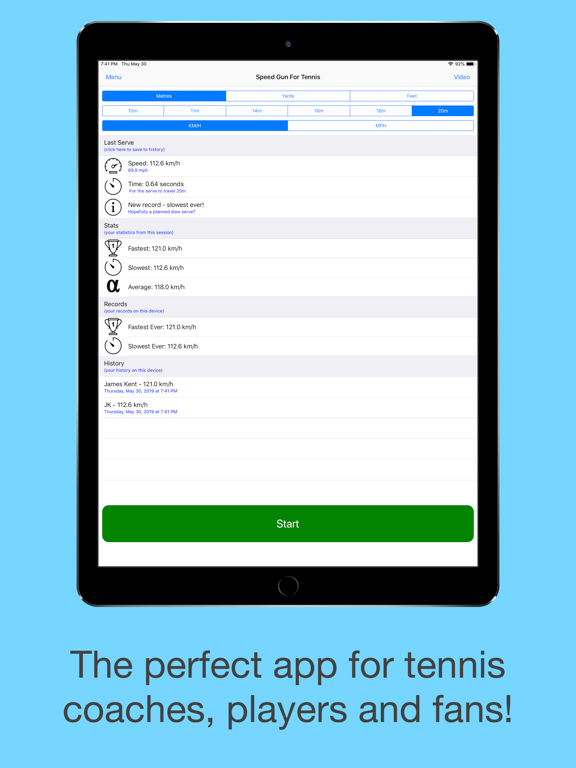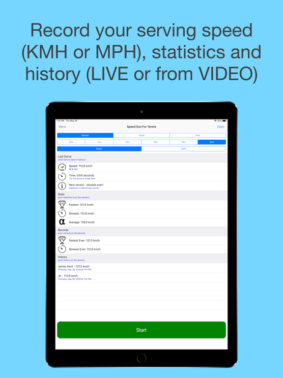 You can use Speed Gun for Tennis LIVE or from VIDEO to do detailed analysis and coaching.