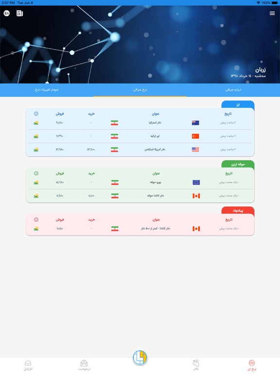 از طریق اپ زربان قادر خواهید بود بدون محدودیت جغرافیایی اقدام به عرضه ، فروش و یا خرید ارز نمایید چنانچه در تجارت خرید و فروش ارز فعال هستید این اپ نیازهای شما را بشکلی بی سابقه تامین مینماید هر شخص قادر است با ثبت نام در این اپ صرافی و تجارت ارزی خود را ایجاد و مدیریت نماید