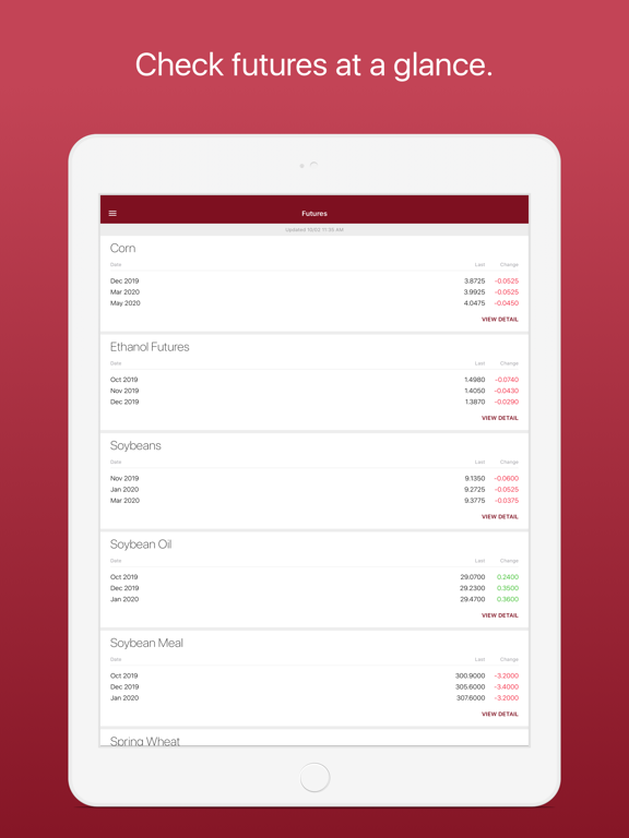 Futures: See Grains, Feed, Livestock and Ethanol futures listed in order of your preference