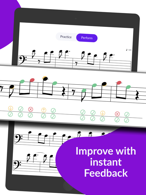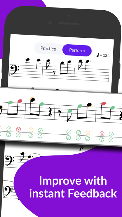 - Interactive live-feedback on your performance: Play on your instrument and practice pitch (intonation) & rhythm