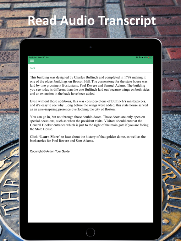 Are you ready to turn your phone into a personal tour guide? This app offers a fully-guided experience of Boston - just like a local giving you a personalized, turn-by-turn, fully-guided tour.