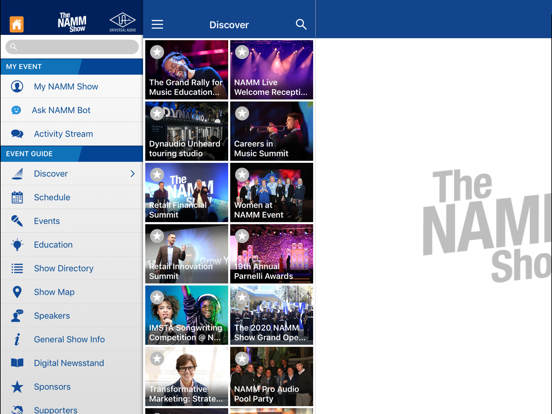 Download the official app for The NAMM Show and Summer NAMM, the global marketplaces for music, sound and entertainment technology. The app provides everything you need to know to navigate like a pro, including a searchable show directory, 3D maps, education and event schedules. Ask questions to our state-of-the-art NAMM bot, and network with fellow attendees via direct messaging.