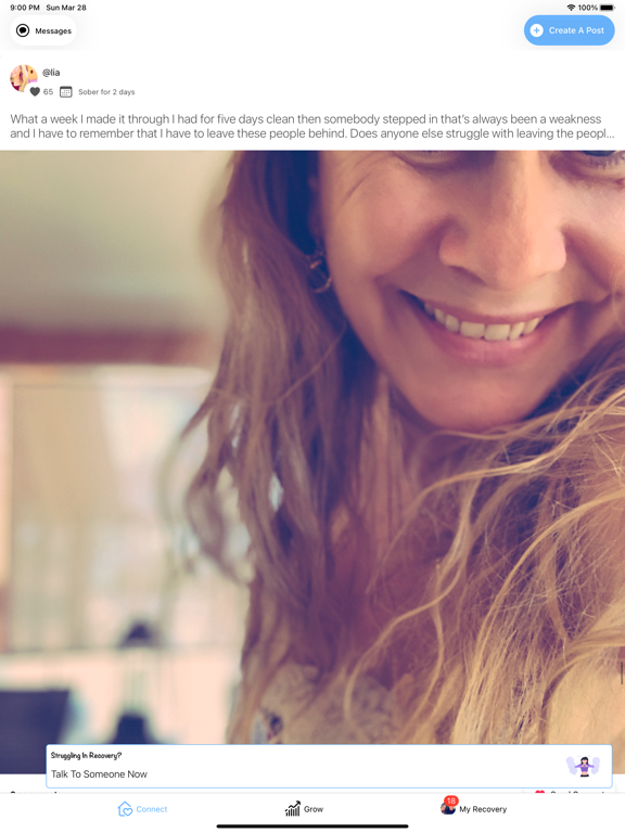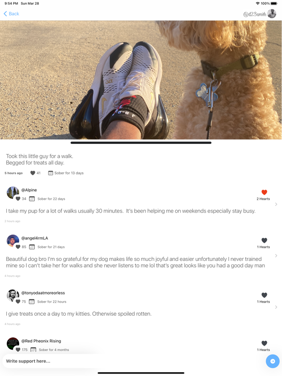 I have been a part of this sober community for almost 2 months! Everyone is so wonderful and supportive. Whether I post something positive or not so positive, these people are there with a hand to hold. Its just another great support system. I’m very thankful to have this app in my life through my recovery“