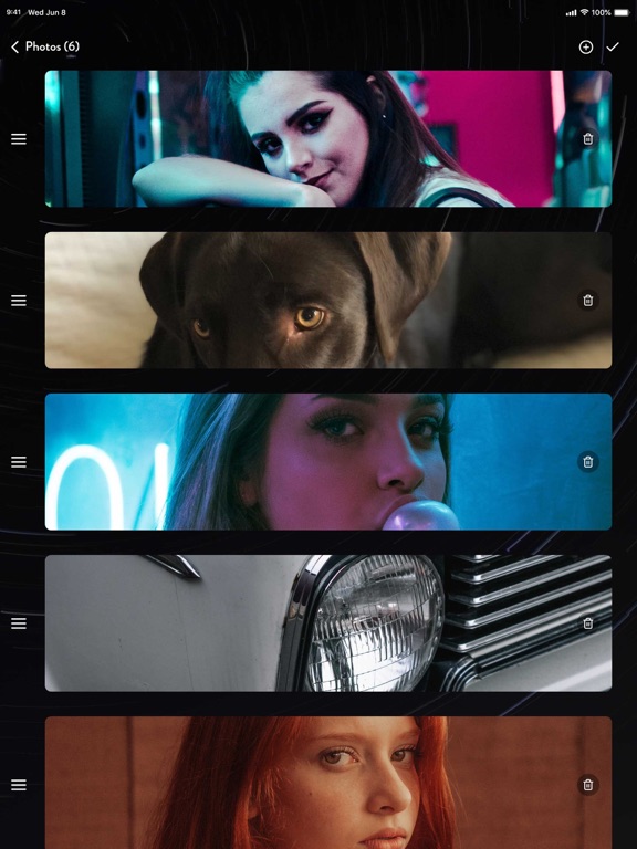 Friendly interface help create music video - photo slideshow with music easier. After pick pictures from gallery, you can arrange those pictures with new order by dragging them. We provide convenient tool to edit music file before adding it into the video.