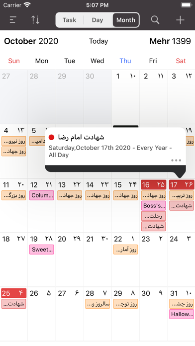 - Language: English, and Farsi. (Affects the entire calendar, widget, and Apple Watch)