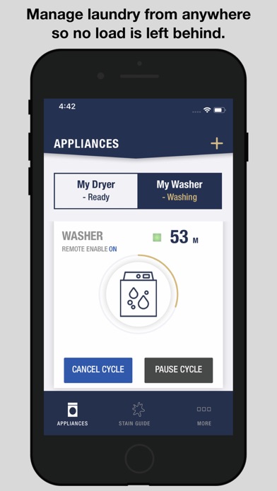 *Appliance must be set to remote enable. Connected subscription may be required. Compatible connected appliance required. Features subject to change. Details & privacy info at maytag.com/connect.