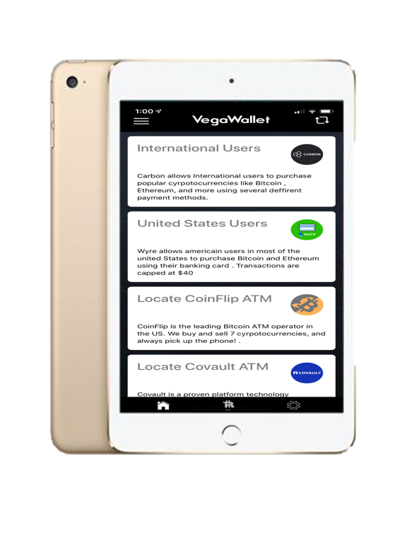 VegaWallet is a complete platform with our secure mobile cryptocurrency wallet acting as one small part of our encompassing user experience. The VegaWallet experience is designed for both beginners and veterans. Our easy to use interface and options have made it simpler than ever to start your journey into cryptocurrency.