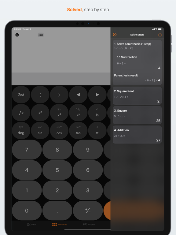 Looking for more power? Turn on the advanced option and get a rich amount of mathematical operators.