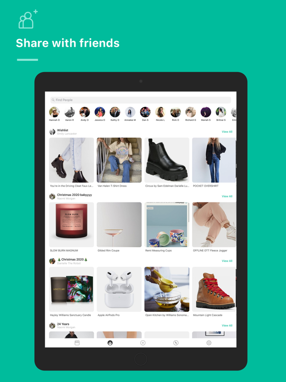 Add gifts from any website using the in-app browser, or clicking the share icon on any link you find, we'll load in the details! Adding wishes has never been easier.