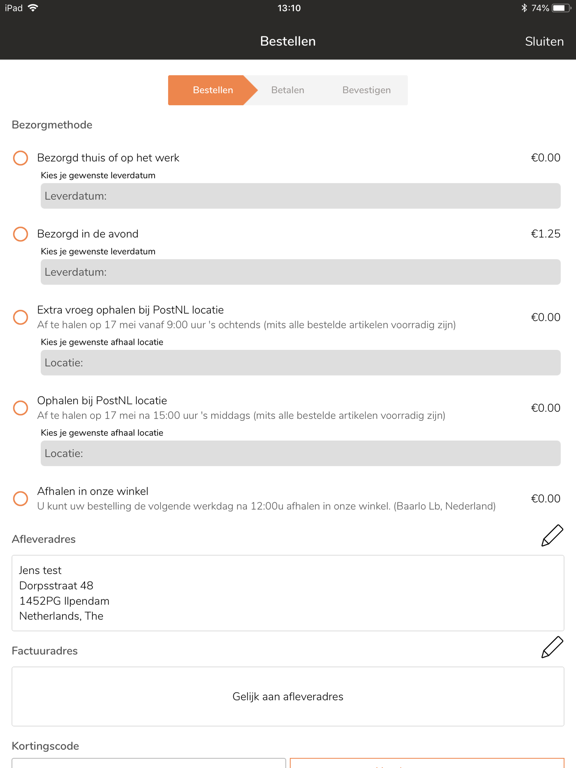 All your purchases will be delivered by PostNL. PostNL is among the best in Europe when it comes to quality of domestic delivery times. The regular delivery days for PostNL are Tuesday through Saturday.