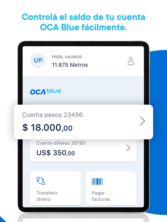 -Realizar transferencias entre cuentas propias, a otras cuentas OCA Blue y a bancos locales, sin límites y gratis.