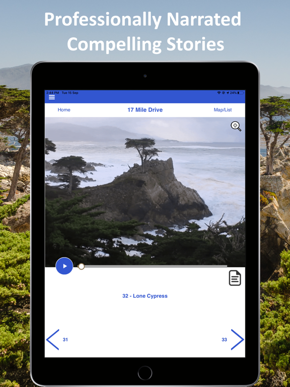 Welcome to the GPS-enabled offline driving tour of Pebble Beach’s 17 Mile Drive in Monterey, California by Action Tour Guide!